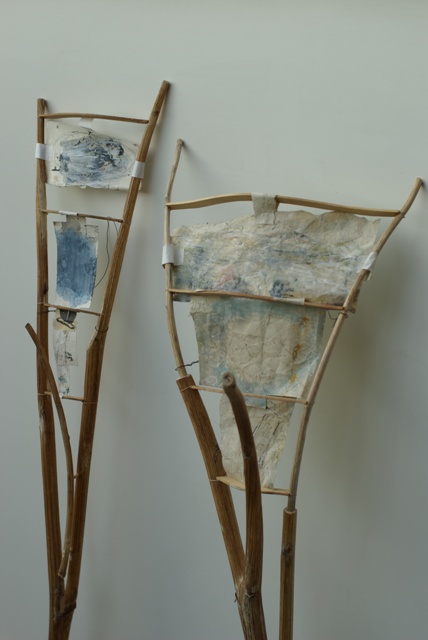 Wood, washi paper, mixed media