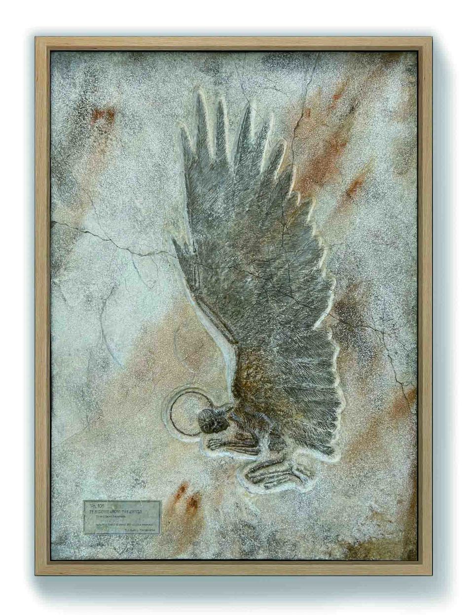 タイムマシーンに乗って2億年後の未来の地球へ発掘の旅に出かけてきました。そこに横たわる現代の地層の中で掘り出してきた天使の化石です。