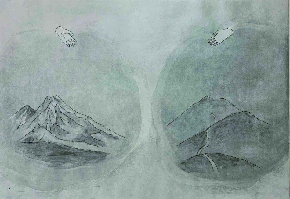 角田 聡子 Satoko Kakuta 遠くの山から手をふりあおう そして時々握手をしよう 2025 230×330mm 銅版画、紙 Let’s wave our hands from the distant mountains – and let’s shake hands sometimes 2025 230 x 330 mm Copperplate print, paper TOP About Gallery Archive Access